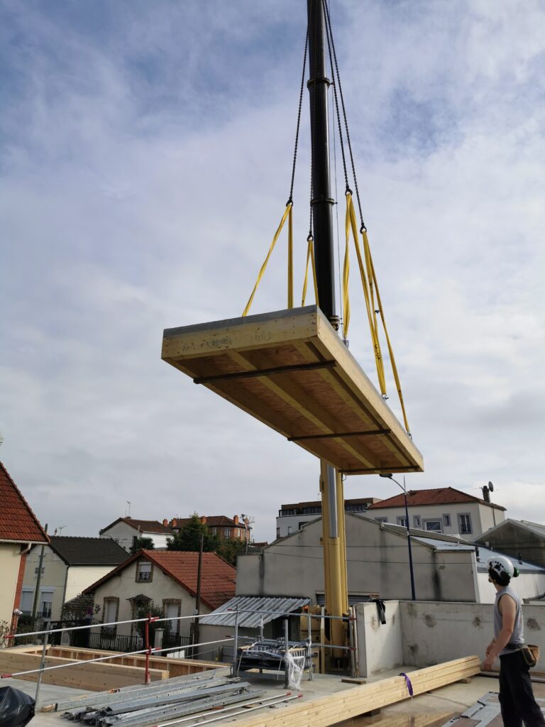 - Mise en place des planchers HYBRIDAL, acheminés et levés en plusieurs caissons de grande dimension.